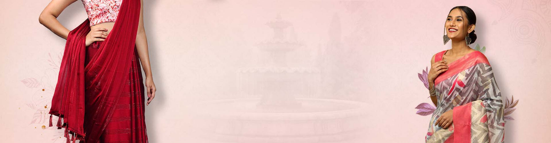 Ajrakh Floral Printed Linen Cotton Ready to wear Saree